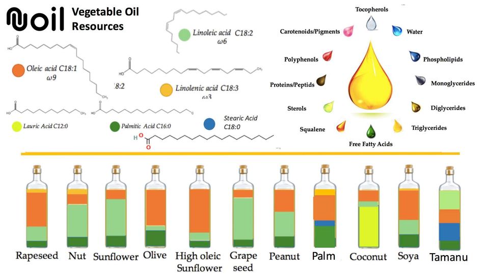 Perhatikan minyak nabati yang saya ambilkan contohnya dari seluruh dunia di bawah, lima diantaranya dari Indonesia. Masing-masingnya mempunyai keunikan tersendiri, meskipun komponen-komponen penyusunnya sama - menunjukkan adanya pencipta Yang Maha Esa.
