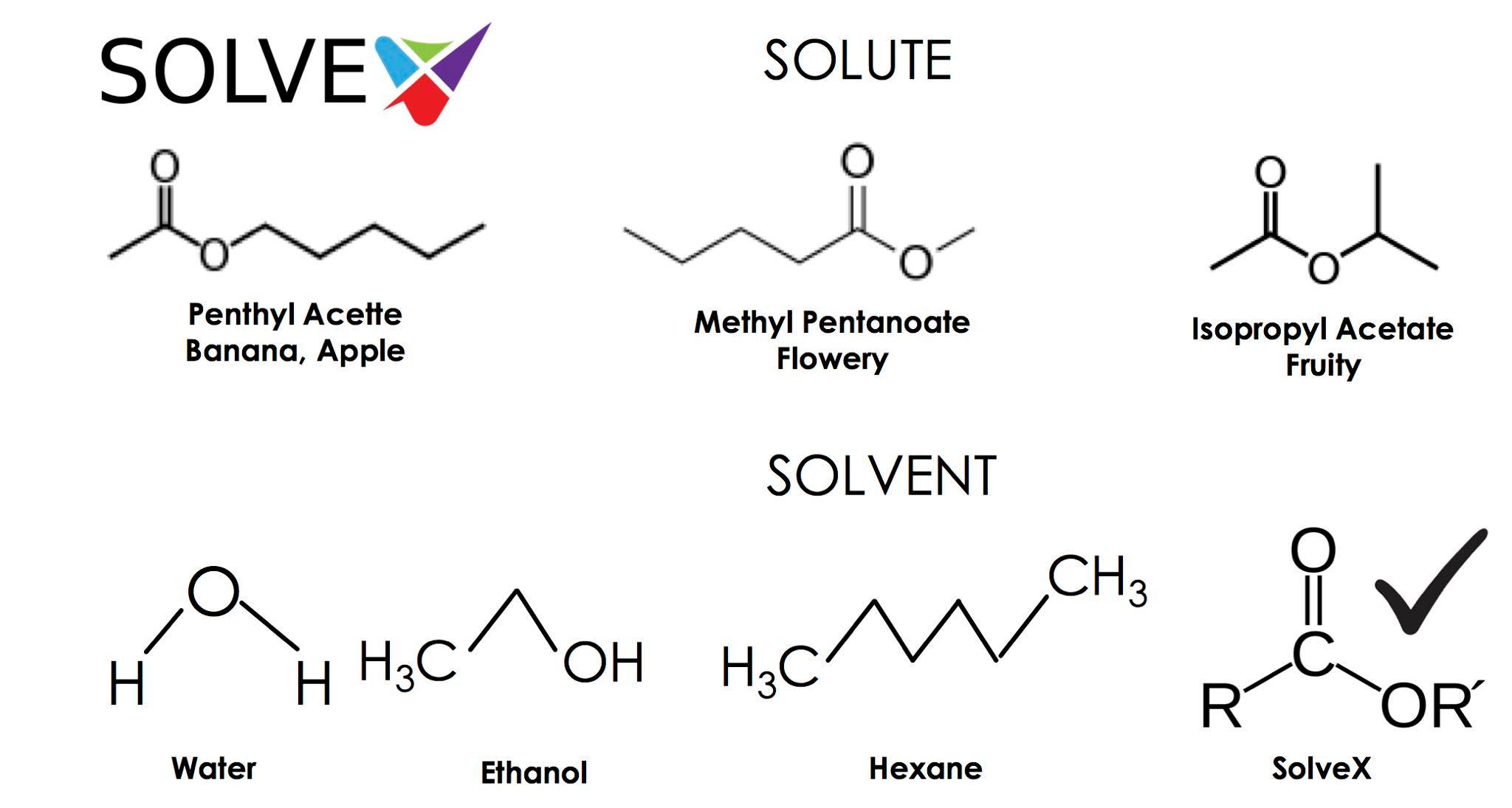 Itulah sebabnya kami perkenalkan solvent alami yang kami sebut SolveX, sepenuhnya dari tanaman, dan bahkan struktur molekulnya-pun memiliki gugus yang persis sama dengan aroma serta senyawa bioaktif yang sangat berharga dari perbagai tanaman/limbah yang melimpah di sekitar kita.