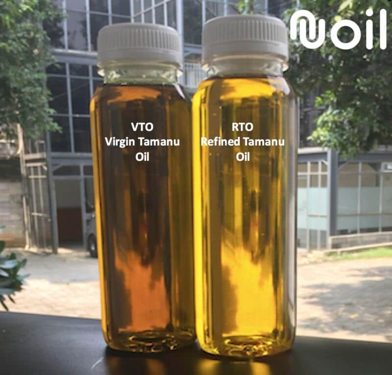 Dua jenis bahan dalam foto ini yang umumnya digunakan - yaitu Virgin Tamanu Oil dan Refined Tamanu Oil. Keduanya bisa kita produksi dengan sangat baik dari biji-biji buah Nyamplung yang rata-rata masih berserakan di seluruh wilayah negeri ini.
