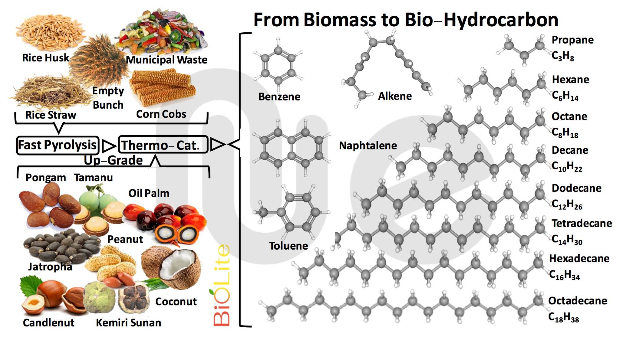 Bedanya untuk buomassa, akan perlu dua tahap proses. Pertama konversi biomassa menjadi bio-oil yang isi utamanya oxygenates (ada di unggahan saya sebelumnya), dan kedua up-grade bio-oil menjadi bio-hydrocarbon. Bio-Hydrocarbon inilah building-blocks seluruh jenis Bahan Bakar yang kita gunakan selama ini.