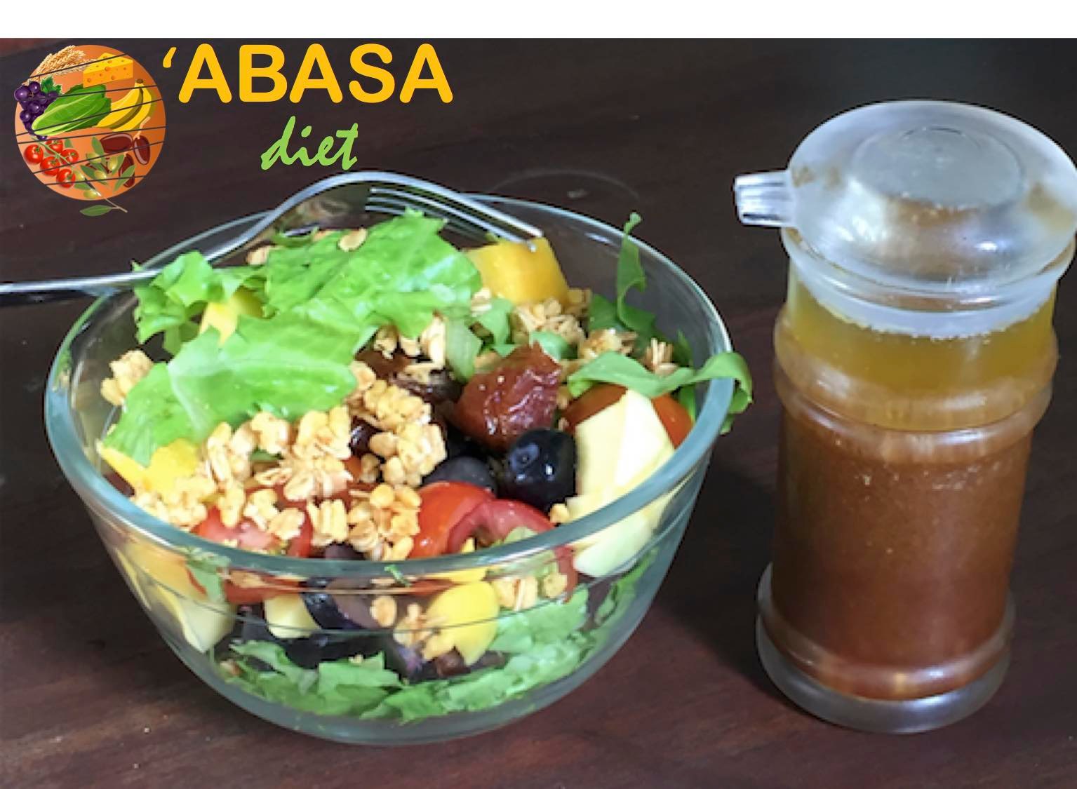 Jadinya makanan seperti aoa kalau kita ikuti petunjukNya yang detail tersebut sampai bumbu-bumbunya? Di jaman ini jadinya kurang lebih seperti foto di bawah. Orang sekarang menyebutnya salad, saya menyebutnya ‘Abasa Diet - makanan lezat, sehat dan bergizi yang diformulasikan berdasarkan Surat ‘Abasa tersebut di atas.
