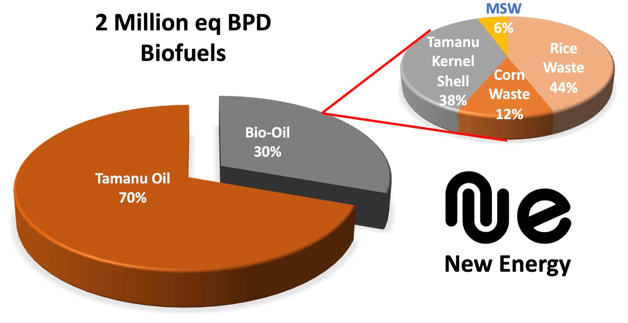 Bagaimana bisa? ilustrasi di bawah penjelasannya. Kita memiliki 14 juta hektar lahan kritis dan sangat kritis, kalau ini saja ditanami tamanu - maka jauh sebelum 2030 - kita akan punya panenan minyak tamanu yang setara dengan 1.4 juta BPD minyak. Selain itu kita punya potensi Bio-Oil dari biomassa yang setara dengan 600,000 BPD minyak, terdiri dari sampah perkotaan, limbah padi, limbah jagung dan cangkang tamanu.