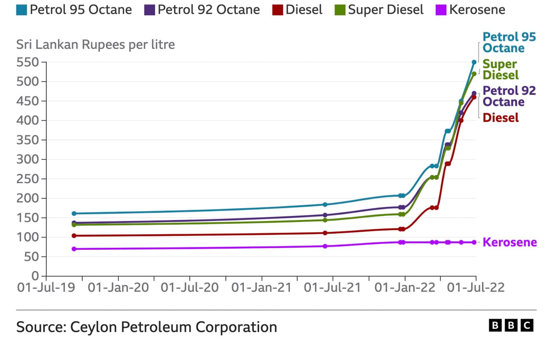 Grafik di bawah menjelaskan dengan gamblang, betapa harga BBM negeri itu melonjak amat sangat tajam dalam beberapa bulan terakhir - sebelum akhirnya penjualan BBM untuk kendaraan pribadi bener-bener dihentikan. Negeri itu tidak lagi mampu membeli minyak dari luar.